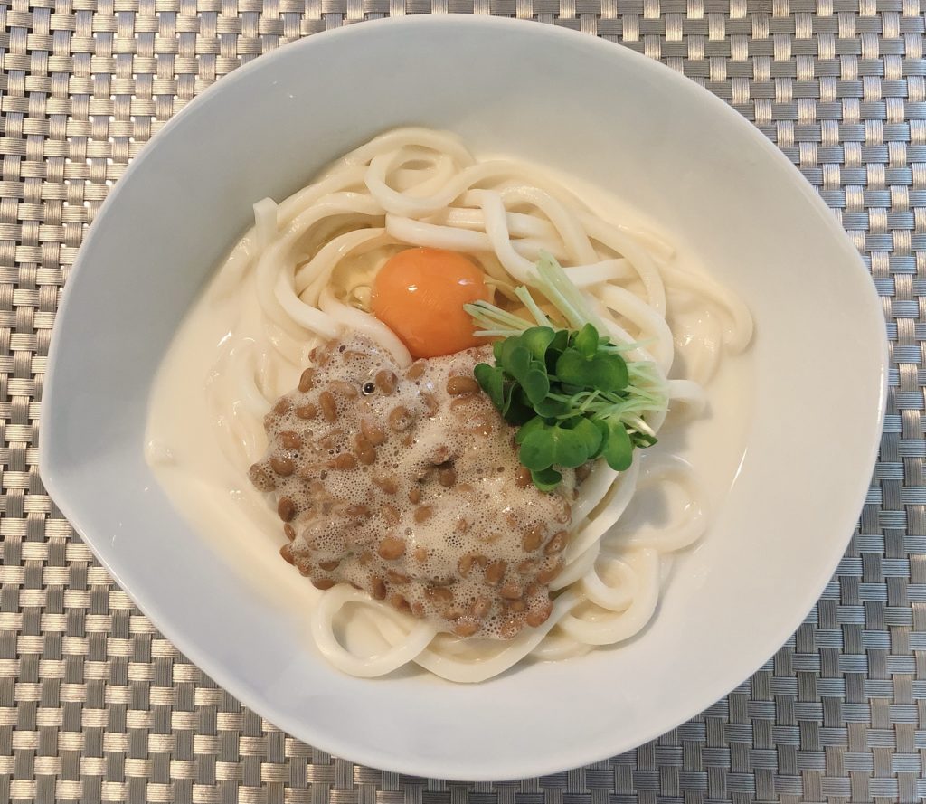 濃厚な無調整豆乳で作る冷やし納豆豆乳うどん。
