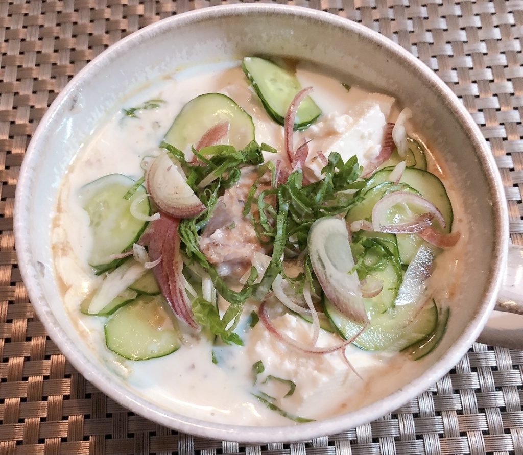 前投稿で紹介したサバ缶冷や汁のアレンジバージョン今回はよせとうふを使ってみました!