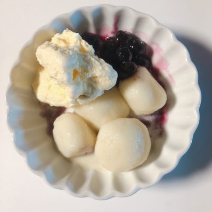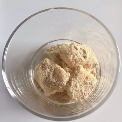 - ボールにおぼろ月夜を入れ泡立て器で滑らかになるまで混ぜる。